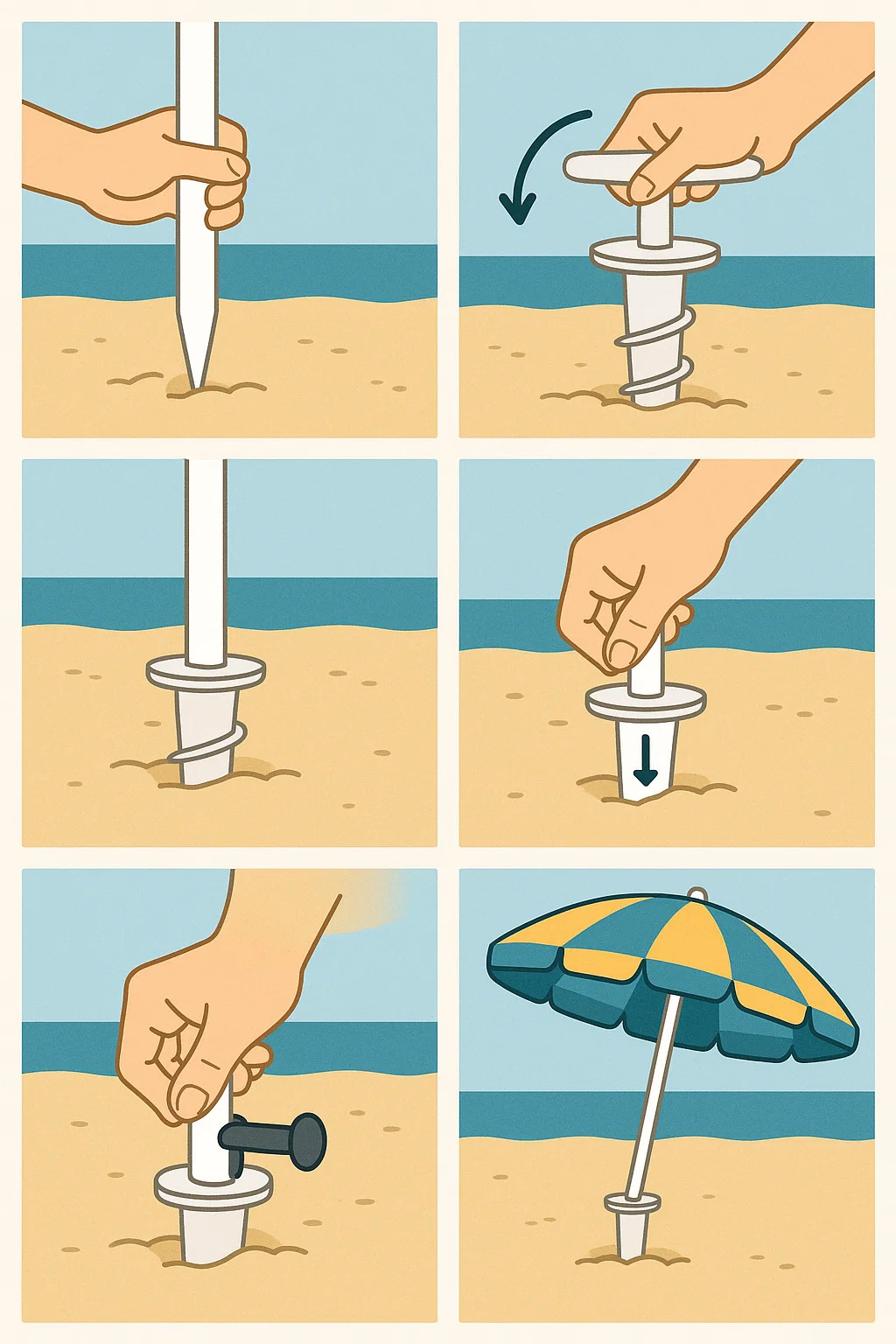 Gebruik een zandanker bij uw parasol zorgt ervoor dat de paraplu stabiel blijft in de zeebries. Hier zijn de gedetailleerde stappen: