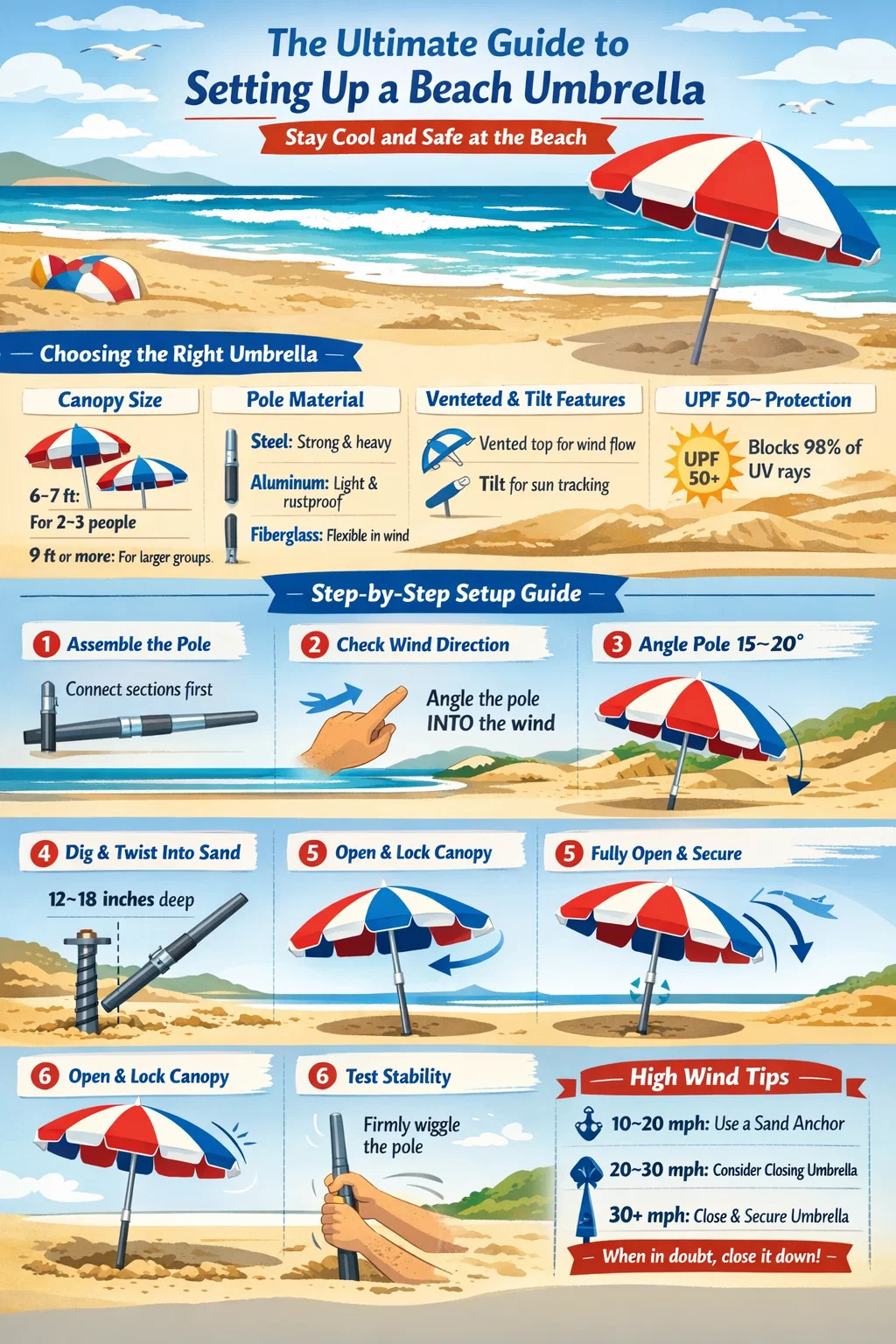 Deze gids behandelt elke stap tot in detail – van het kiezen van de juiste parasol tot het stabiel houden ervan bij windstoten van meer dan 30 km/uur – zodat u minder tijd hoeft te besteden aan het worstelen met de uitrusting en meer tijd kunt besteden aan het genieten van het water.